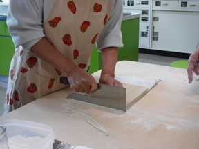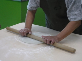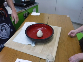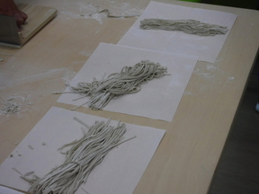 講師のオリジナルブレンドのそば粉を使用したそば打ち体験を実施しました。