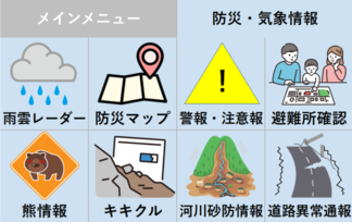 防災・気象情報メニューについては、次の「防災・気象情報メニュー編」をご覧ください。