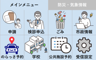 ごみの分別方法検索や収集日通知の設定、粗大ごみの収集申込などができます。詳細は次の「ごみ編」をご覧ください。